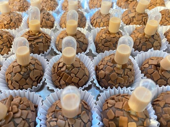 - Gourmet Baileys Brigadeiro is a sophisticated and indulgent twist on the classic Brazilian brigadeiro. Often, the Liqueur Brigadeiro Gourmet is rolled in a variety of coatings, such as cocoa powder, finely ground chocolate, or even edible gold for an extra touch of elegance and, more often, the liqueur is display in a Squeeze Transfer Pipettes Dropper on the top of the sweet . This decadent variation of brigadeiro offers a unique, luxurious experience that blends the sweetness of the beloved Brazilian confection with the depth and warmth of liqueur. The Liqueur Gourmet Brigadeiro is a sophisticated treat often served at weddings and special celebrations, prized for its refined taste and presentation.